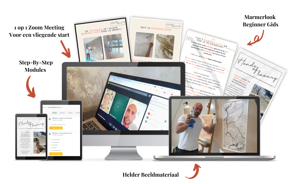 De Marmerlook Imitatie Cursus is de oplossing voor iedereen, van beginners tot professionals, die willen leren hoe ze marmer kunnen imiteren met eenvoudige, betaalbare materialen. Ik ben hier om je te helpen zelfvertrouwen te krijgen en prachtige marmerlook afwerkingen te maken – net zoals ik dat heb geleerd.